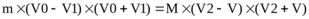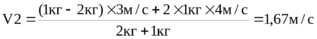 123. Шар массой m = 1 кг движется со скоростью V0 = 4 м/с и сталкивается с шаром массой M = 2 кг, движущимся навстречу ему со скоростью V = 3 м/с. Каковы скорости V1 и V2 шаров после удара? Удар считать абсолютно упругим, прямым, центральным.