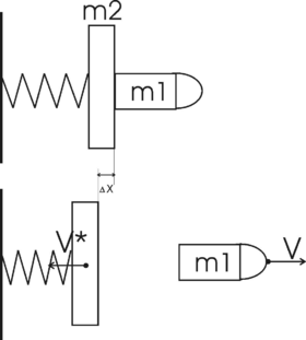 127. Из ствола автоматического пистолета вылетела пуля массой m1 = 10 г со скоростью V=300 м/с. Затвор пистолета массой m2 = 200 г прижимается к стволу пружиной, жесткость которой k = 25 кН/м. На какое расстояние отойдет затвор после выстрела? Считать, что пистолет жестко закреплен.