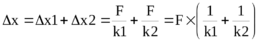 131. Определить работу растяжения двух соединенных последовательно пружин жесткостями k1 = 400 Н/м и k2 = 250 Н/м, если первая пружина при этом растянулась на Δx1= 2 см.