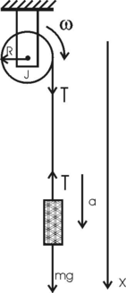 143. На обод маховика диаметром D = 60 см намотан шнур, к концу которого привязан груз массой m = 2 кг. Определить момент инерции J маховика, если он, вращаясь равноускоренно под действием силы тяжести груза, за время t = 3 с приобрел угловую скорость ω = 9 рад/с.