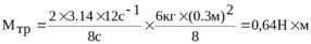 147. Определить момент силы М, который необходимо приложить к блоку, вращающемуся с частотой ν0=12с-1, чтобы он остановился в течение времени T = 8 с. Диаметр блока D = 30 см. Массу блока m = 6 кг считать равномерно распределенной по ободу.