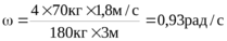 153. Платформа в виде диска диаметром D= 3м и массой m1=180 кг может вращаться вокруг вертикальной оси. С какой угловой скоростью ω будет вращаться платформа, если по ее краю пойдет человек массой m2=70 кг со скоростью V=1.8 м/с относительно платформы?