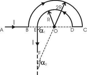 401. Бесконечно длинный провод с током I=100 А изогнут так, как это показано на рис. Определить магнитную индукцию B в точке О. Радиус дуги R= 10 см.