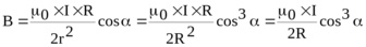405. По тонкому кольцу радиусом R = 20см течет ток I=100 А. Определить магнитную индукцию B на оси кольца в точке А (рис.). Угол α = π/3.