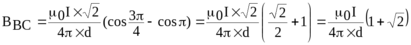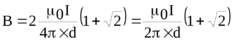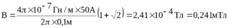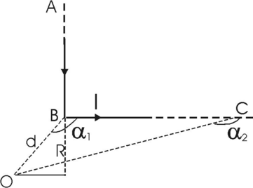 410. Бесконечно длинный провод с током I=50 А изогнут так, как это показано на рис. Определить магнитную индукцию B в точке A, лежащей на биссектрисе прямого угла на расстоянии d=10cм от его вершины.