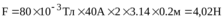 418. Тонкое проводящее кольцо с током I = 40 А помещено в однородное магнитное поле (В=80мТл). Плоскость кольца перпендикулярна линиям магнитной индукции. Радиус R кольца равен 20 см. Найти силу F, растягивающую кольцо.