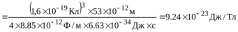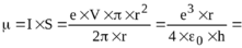 427. Электрон в атоме водорода движется вокруг ядра (протона) по окружности радиусом r=53пм. Определить магнитный момент μ эквивалентного кругового тока.