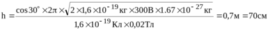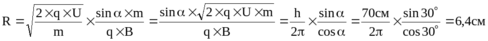 437. Протон прошел ускоряющую разность потенциалов U =300 В и влетел в однородное магнитное поле (В = 20мТл) под углом α=30° к линиям магнитной индукции. Определить шаг h и радиус R винтовой линии, по которой будет двигаться протон в магнитном поле.