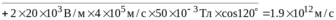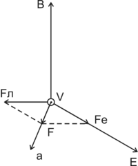 441. Протон влетел в скрещенные под углом φ= 120° магнитное (В = 50мТл) и электрическое (E = 20кВ/м) поля. Определить ускорение а протона, если его скорость V (|V| = 4×105 м/с) перпендикулярна векторам Е и В.