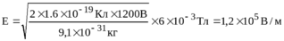 444. Электрон, пройдя ускоряющую разность потенциалов U=1,2кВ, попал в скрещенные под прямым углом однородные магнитное и электрическое поля. Определить напряженность Е электрического поля, если магнитная индукция В поля равна 6 мТл.