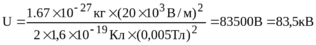 448. Протон прошел некоторую ускоряющую разность потенциалов U и влетел в скрещенные под прямым углом однородные поля: магнитное (В = 5 мТл) и электрическое (E= 20 кВ/м). Определить разность потенциалов U, если протон в скрещенных полях движется прямолинейно.