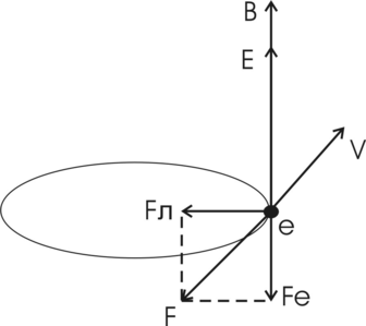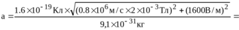 449. Магнитное (В = 2мТл) и электрическое (Е = 1,6кВ/м) поля сонаправлены. Перпендикулярно векторам В и Е влетает электрон со скоростью V = 0,8 Мм/с. Определить ускорение а электрона.
