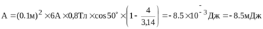 455. Квадратный контур со стороной a=10см, в котором течет ток I=6А, находится в магнитном поле (В = 0,8 Тл) под углом α=50° к линиям индукции. Какую работу A нужно совершить, чтобы при неизменной силе тока в контуре изменить его форму на окружность?