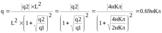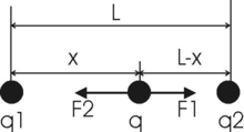 Для того, чтобы заряд q1 находился в равновесии необходимо, чтобы сила взаимодействия между q1 и q2:
