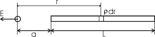 311. Тонкий стержень длиной L = 20 см несет равномерно распределенный заряд Q=0,1мкКл. Определить напряженность Е электрического поля, создаваемого распределенным зарядом в точке А, лежащей на оси стержня на расстоянии а = 20 см от его конца.