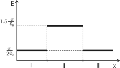 327. На двух бесконечных параллельных плоскостях равномерно распределены заряды с поверхностными плотностями σ1 и σ2. Требуется: 1) используя теорему Остроградского—Гаусса и принцип суперпозиции электрических полей, найти выражение Е(х) напряженности электрического поля в трех областях: I, II и III. Принять σ1=σ, σ2 =–2σ; σ=20нКл/м2 2) вычислить напряженность Е поля в точке, расположенной между плоскостями, и указать направление вектора Е; 3) построить график Е(х).