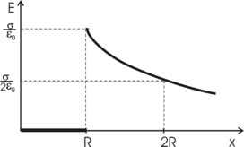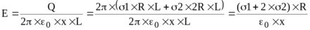 329. На двух коаксиальных бесконечных цилиндрах радиусами R и 2R равномерно распределены заряды с поверхностными плотностями σ1 и σ2. Требуется: 1) используя теорему Остроградского—Гаусса: найти зависимость E(x) напряженности электрического поля от расстояния для трех областей: I, II и III. Принять σ1 =σ, σ2 =–σ; 2) вычислить напряженность Е в точке, удаленной от оси цилиндров на расстояние r, и указать направление вектора Е. Принять σ= 60 нКл/м2, r= 3R; 3) построить график E(x).