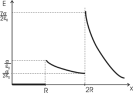 1. 0<x<R. В этом случае внутри нет зарядов и Q=0. Поэтому E=0.