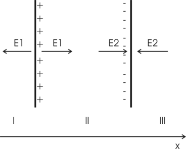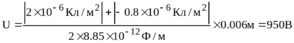 334. Две параллельные заряженные плоскости, поверхностные плотности заряда которых σ1= 2 мкКл/м2 и σ2 =–0,8 мкКл/м2, находятся на расстоянии d = 0,6 см друг от друга. Определить разность потенциалов U между плоскостями.