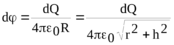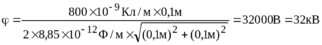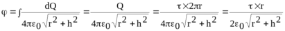 337. Тонкий стержень согнут в кольцо радиусом r =10 см. Он равномерно заряжен с линейной плотностью τ =800 нКл/м. Определить потенциал в точке, расположенной на оси кольца на расстоянии h = 10 см от его центра.
