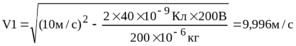 341. Пылинка массой m=200 мкг, несущая на себе заряд Q = 40 нКл, влетела в электрическое поле в направлении силовых линий. После прохождения разности потенциалов U=200 В пылинка имела скорость V2 = 10 м/с. Определить скорость пылинки до того, как она влетела в поле.