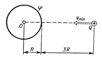 347. Какой минимальной скоростью Vmin должен обладать протон, чтобы он мог достигнуть поверхности заряженного до потенциала φ0 = 400 В металлического шара.