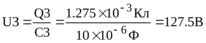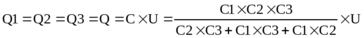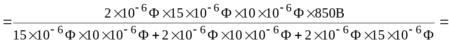 353. Конденсаторы емкостями С1 = 2 мкФ, С2 = 15 мкФ и С3 =10 мкФ соединены последовательно и находятся под напряжением U = 850 В. Определить напряжение и заряд на каждом из конденсаторов.