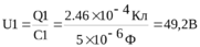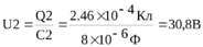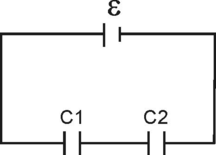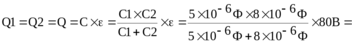 356. Два конденсатора емкостью С1 = 5 мкф и С2 = 8 мкф соединены последовательно и присоединены к батарее с э.д.с. ε=80В. Определить заряд Q1 и Q2 каждого из конденсаторов и разности потенциалов U1 и U2 между их обкладками.