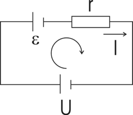 366. Аккумулятор с ЭДС ε=12 В заряжается от сети постоянного тока с напряжением U=15В. Определить напряжение на клеммах аккумулятора, если его внутреннее сопротивление R=10Ом.