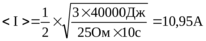 376. За время T = 10 с при равномерно возрастающей силе тока от нуля до некоторого максимума в проводнике выделилось количество теплоты Q = 40 кДж. Определить среднюю силу тока <I> в проводнике, если его сопротивление R = 25 Ом.