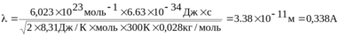 611. Вычислить наиболее вероятную дебройлевскую длину волны λ молекул азота, содержащихся в воздухе при комнатной температуре.