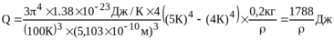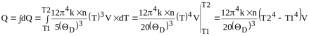 661. Определить теплоту Q, необходимую для нагревания кристалла калия массой m = 200 г от температуры T1 = 4 К до температуры T2 = 5 К. Принять характеристическую температуру Дебая для калия TD= 100 К и считать условие Т <<D выполненным.
