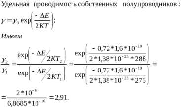 672. Германиевый кристалл, ширина Δε запрещенной зоны в котором равна 0,72 эВ, нагревают от температуры T1 = 0°С до температуры T2 = 15°С. Во сколько раз возрастет его удельная проводимость?
