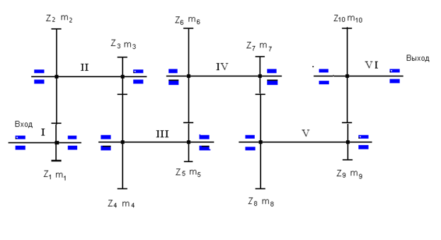 По результатам выполненного расчета изобразим кинематическую схему редуктора в виде эскиза без соблюдения масштаба, но таким образом, чтобы была ясна кинематическая цепь передачи движения между валами (рис. 3.1).
