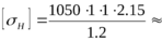 | Предел контактной выносливости поверхности зубьев | HR, МПа | 17HRC + 200 = 744 | 1050 |