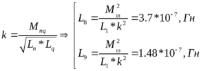1.5. Определить значения Mnq, Mnp, Lq, Lp ТР из условия, что индуктивность первичной обмотки Ln известна, U1=5В, U2=10В, а коэффициент магнитной связи обмоток k следует выбрать самостоятельно из указанного диапазона: 0,5 < k < 0,95 (n, p, q – номера индуктивностей ТР).