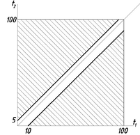 Введем в рассмотрение прямоугольную систему координат x0y. В этой системе неравенства удовлетворяют координаты любой точки, принадлежащей квадрату. Таким образом, этот квадрат можно рассматривать как фигуру G координаты точек которой представляют собой все возможные значения моментов наступления заявок.