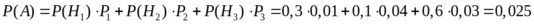 На склад поступили детали, изготовленные на 3-х станках. На 1-ом – а % деталей, на 2-ом- b % деталей, на 3-ем – c % деталей. Вероятность выпуска бракованных деталей на i- Ом станке -