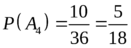 Пусть событие А4-сумма выпавших очков заключено в промежутке [2,5]. Из таблицы 1 получаем, что А4={(1,1),(1,2),(1,3),(1,4),(2,1),(2,2),(2,3),(3,1),(3,2),(4,1)}.