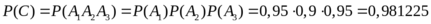 - вероятность того, что будет обслужена хотя бы одна заявка