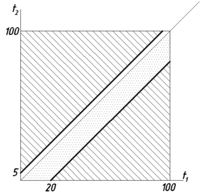 На некоторое обслуживающее устройство поступает 2 заявки. Каждая может поступить в любой момент времени в течение Т минут. Время обслуживания 1-ой заявки -