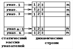 ptrstr:array[1..nn] of pointer; {статический массив указателей на строки по m элементов в строке}