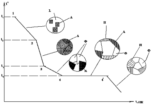 Скорость охлаждения (vохл ) – критический параметр. В зависимости от нее превращения в структуре при охлаждении могут быть: