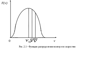 При хаотическом движении молекул газа их скорости различны как по величине, так и по направлению. В «идеальном газе» распределение молекул по скоростям (энергиям) подчиняется статистике Максвелла-Больцмана. Основные уравнения этой статистики даны в курсе физики. Мы рассмотрим только функцию распределения молекул по скоростям и основные скорости (рис. 2.1).