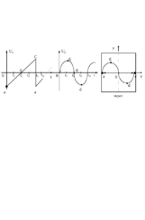 В нулевой момент времени по Х луч смещен в точку а, а по Y напряжение равно нулю, луч на экране в точке а. За время от t0 до t1 по Х луч равномерно перемещается к центру, а по Y напряжение меняется до амплитудного, выписывая 1/4 синусоиды.