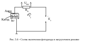 В рабочем режиме фотодиода сигнал URн снимается с сопротивления нагрузки Rн (рис. 5.6), которое включается в анодную цепь.