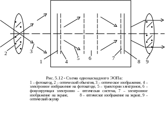 Основными элементами ЭОПов являются фотокатод с внешним фотоэффектом, фокусирующая и ускоряющая электроны электронно-оптическая система и люминесцентный экран.