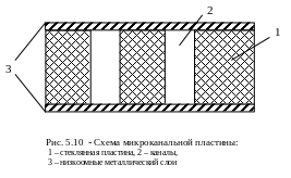 икроканальная пластина (МКП) – это стеклянная пластина, пронизанная большим числом параллельных каналов (рис. 5.10).