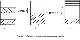 Если запрещенная зона широкая (45 эВ) – это диэлектрики (рис. 2.7, в).
