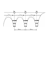 Сблизим атомы (а=Х). Слева цепочка идет за пределы рисунка, справа кончается. Теперь, как показано пунктиром на рис. 2.5, воронки атомов перекрываются. То есть электрон среднего атома испытывает притяжение не только к своему ядру, но и к соседнему. Теперь все электроны кристалла можно разделить на 2 группы: